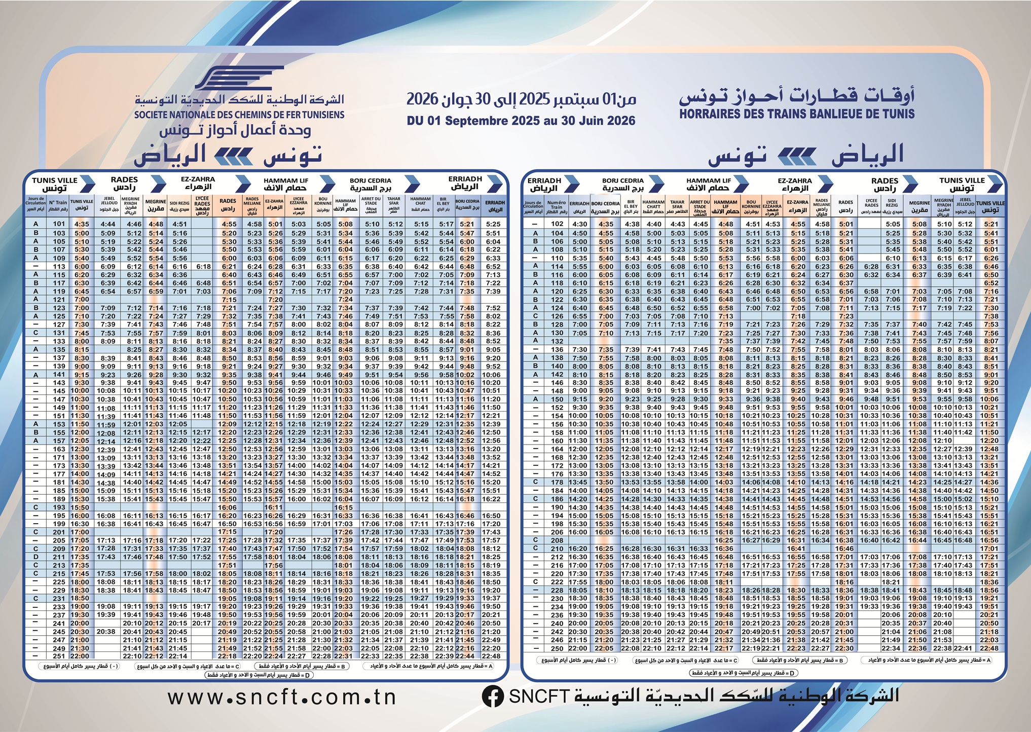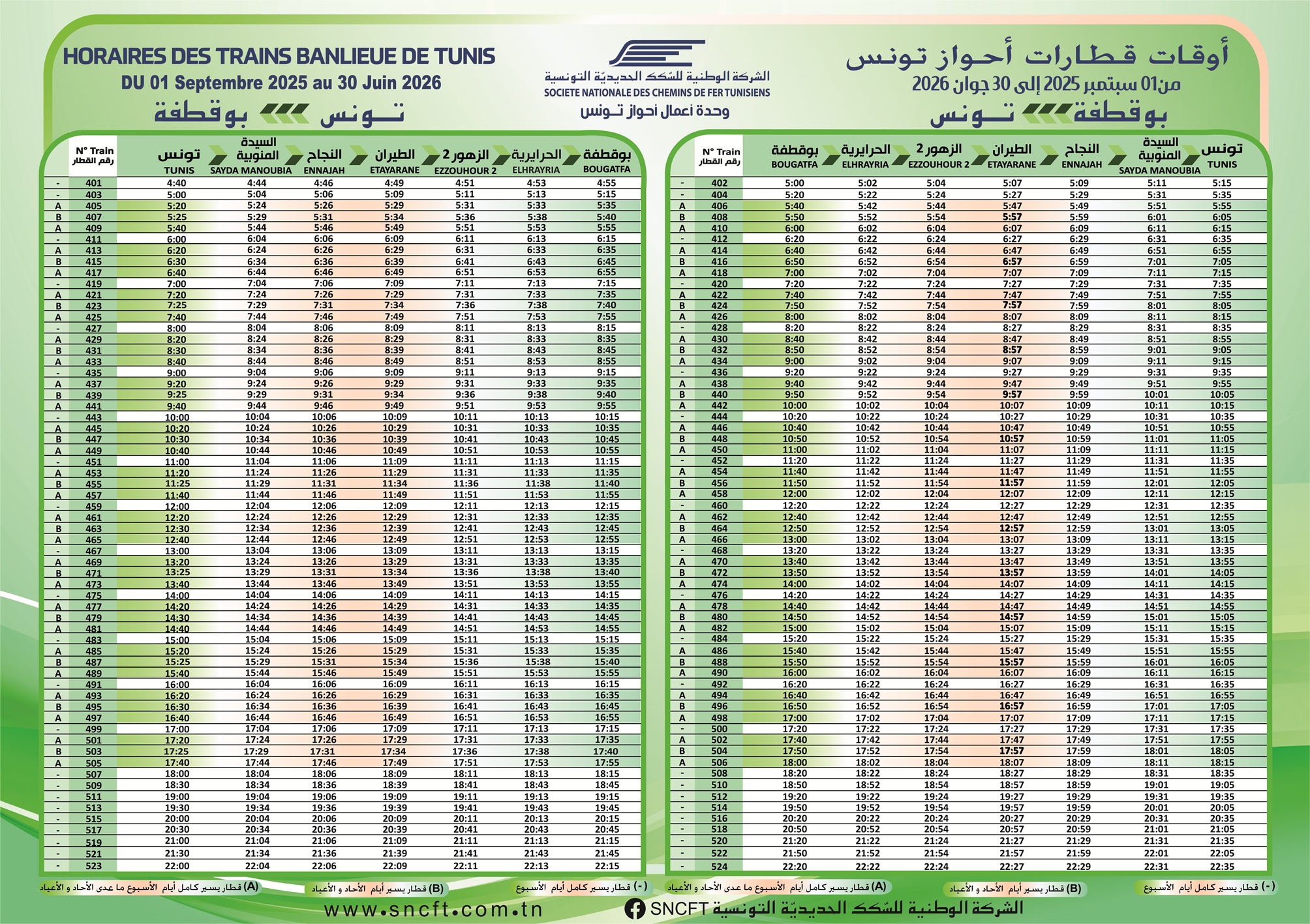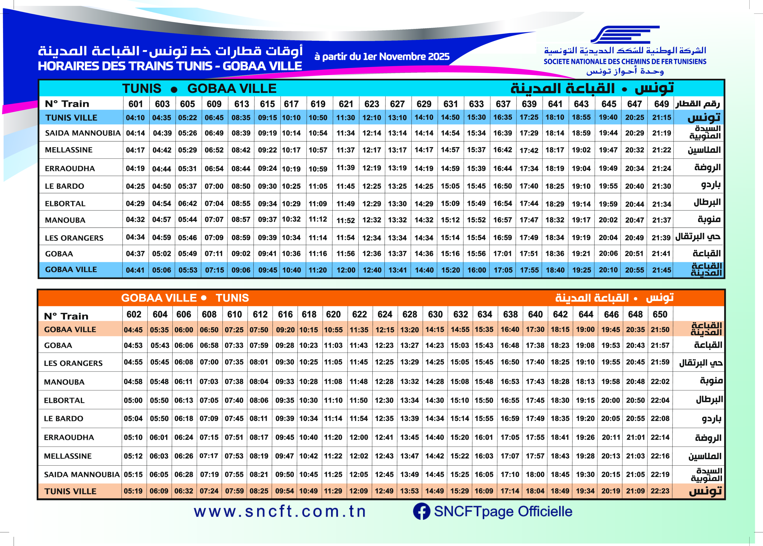 Consulter les horaires des départs et des arrivées des trains des Banlieues sud et ouest de Tunis